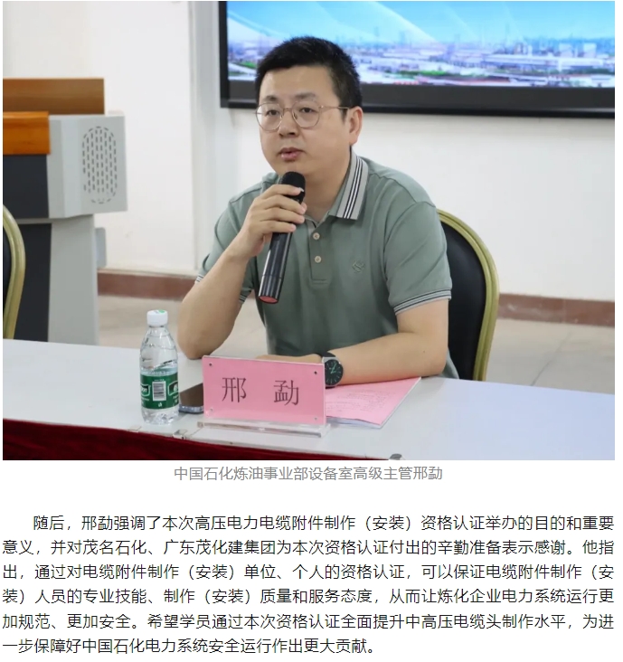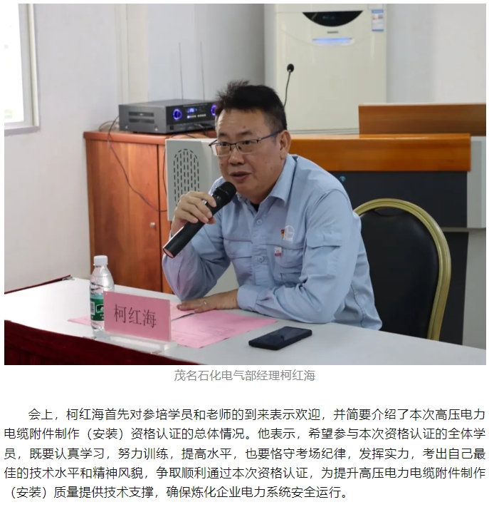 首次中國石化煉化板塊高壓電力電纜附件制作(安裝)資格認證在茂名順利舉行