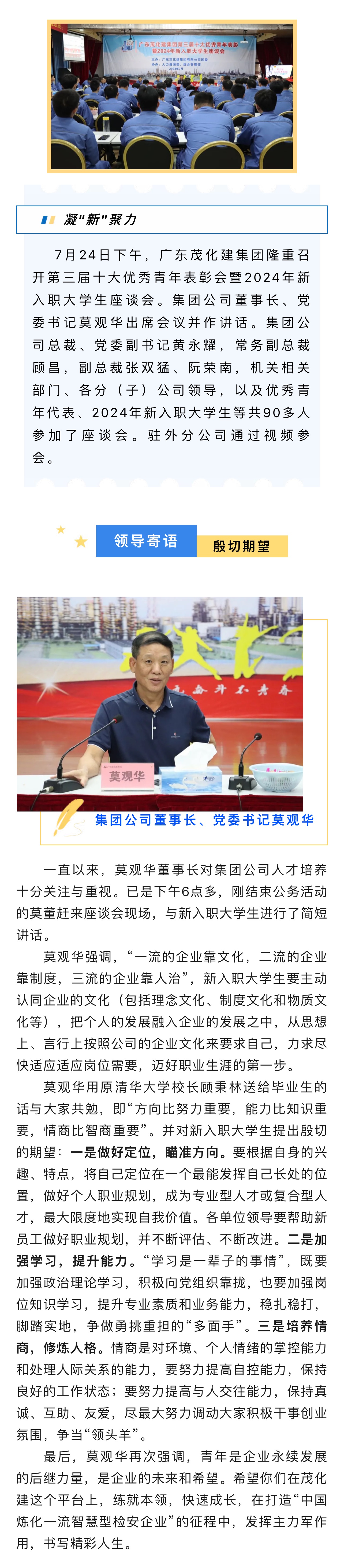 集團(tuán)公司召開第三屆十大優(yōu)秀青年表彰會(huì)暨2024年新入職大學(xué)生座談會(huì)