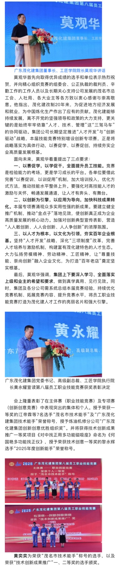 技能照亮前程,創(chuàng)新驅(qū)動未來!廣東茂化建集團第八屆員工職業(yè)技能競賽圓滿舉行