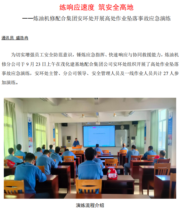 煉油機修配合集團安環(huán)處開展高處作業(yè)墜落事故應(yīng)急演練
