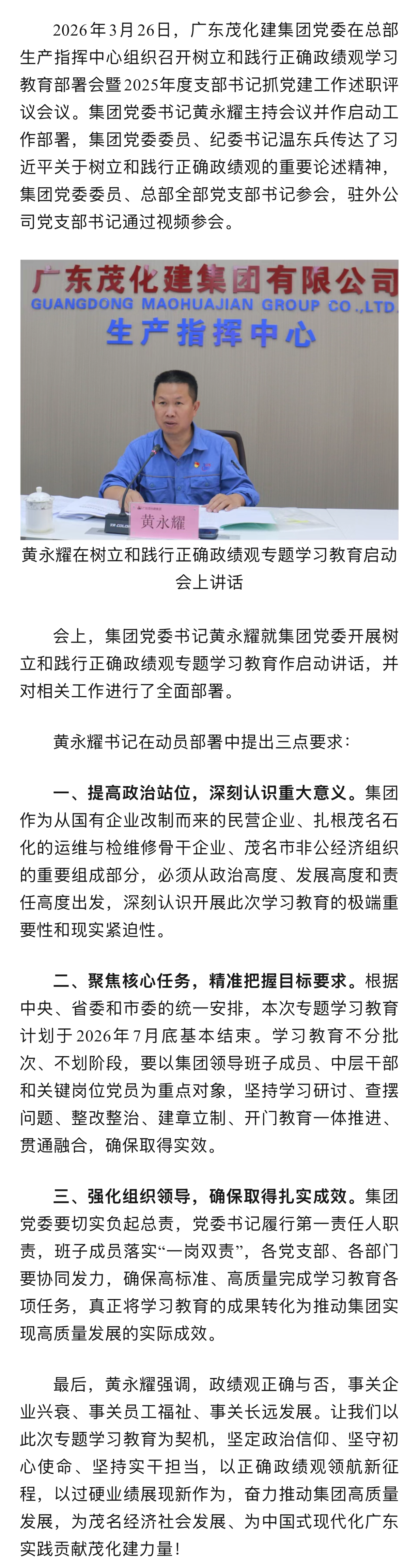 廣東茂化建集團(tuán)黨委召開樹立和踐行正確政績(jī)觀學(xué)習(xí)教育工作部署會(huì)